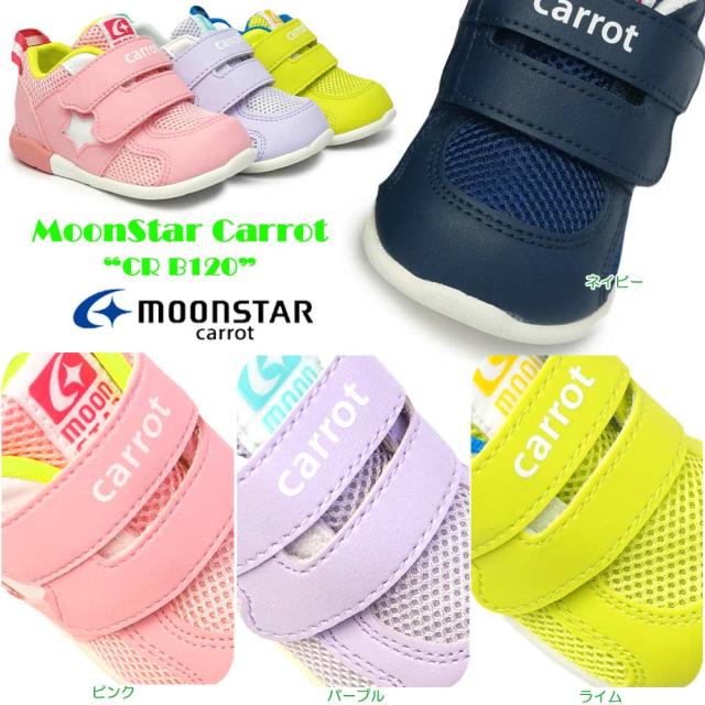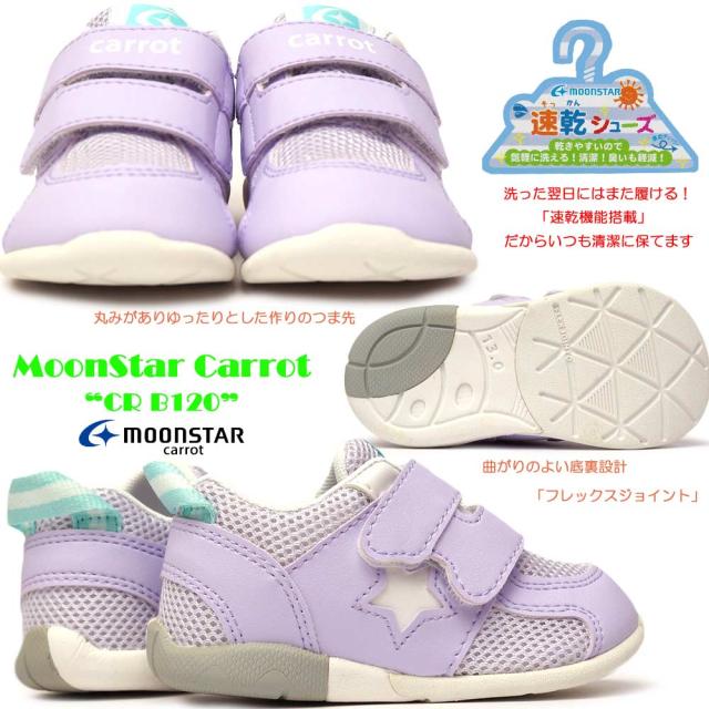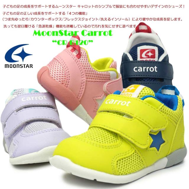 ムーンスター キャロット ベビースニーカー CR B120 子供靴 3E マジック式 ハイカット 速乾機能 MoonStar Carrot
