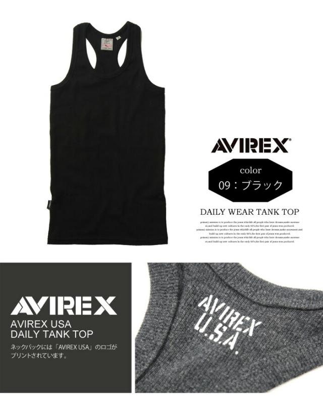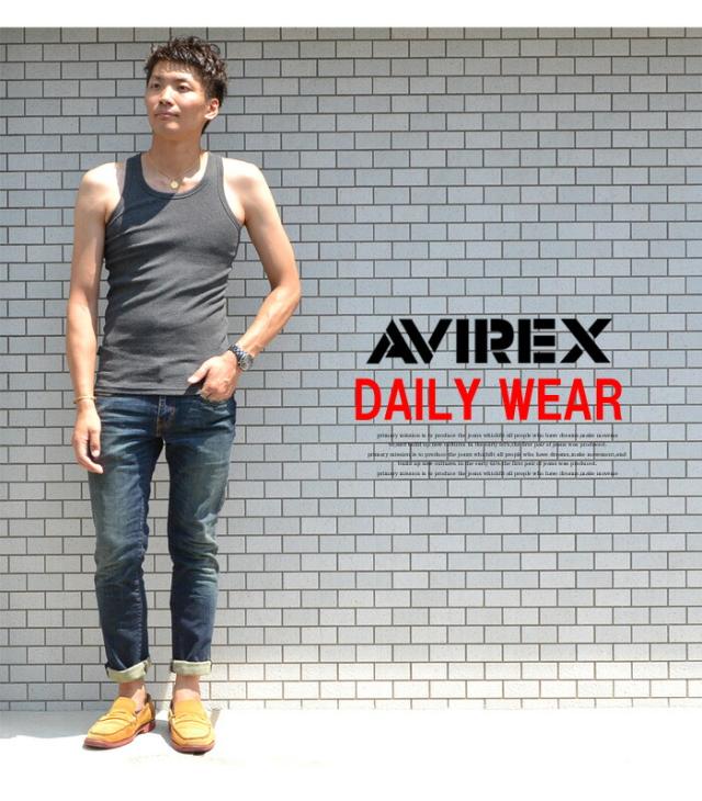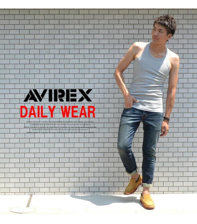AVIREX アビレックス リブ素材 タンクトップ マッスルタンク 無地 メンズ 半T カットソー マッチョタンク トップス ランニング 618363 6143503 アヴィレックス 783-5937001