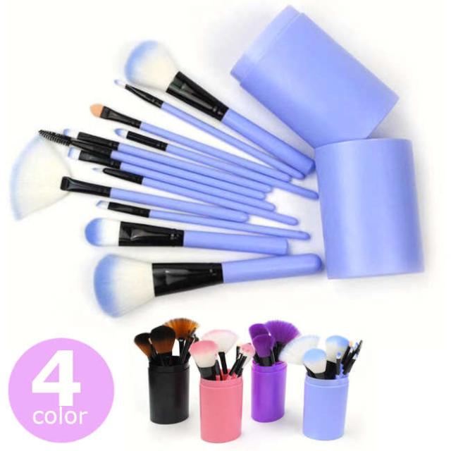 便利なメイクブラシ12本セット。 フェイスブラシやリップブラシ、チークブラシ、アイシャドウブラシなどに対応できる太さの違う12本が揃っています。 自宅ではもちろん、外出時にも便利なケース付きです。 カラー:ピンク、パープル、レイクブルー、ブラック |
