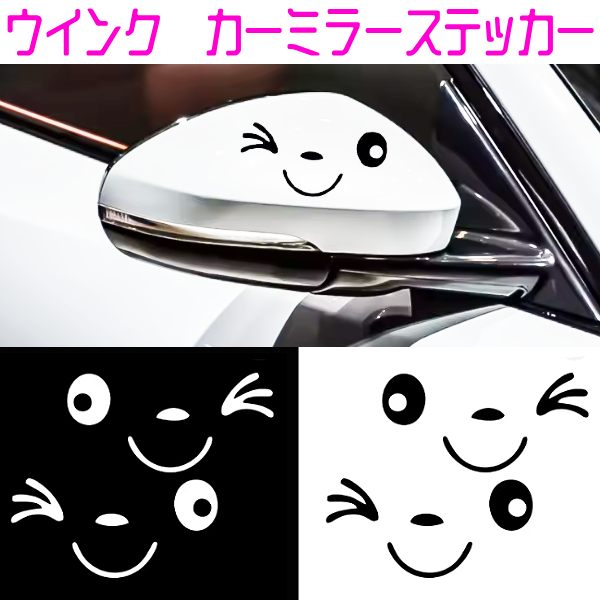 転写式 カーステッカー 左右 2枚 セット ペア ウインク スマイル 顔 サイドミラー ドアミラー ステッカー シール かわいい デコレーション デカール オートバイ バイク ヘルメット スーツケース キャリーケース