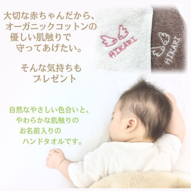 刺繍 名前入り 2枚組 オーガニック ハンカチ エンジェル organic タオル baby 名前入り ラッピング 名入れ 箱入り ナチュラル プレゼント ギフト かわいい 名前 出産祝い タオル 男の子 女の子 ラッピング ワンマイルウェア 入学 オリジナル