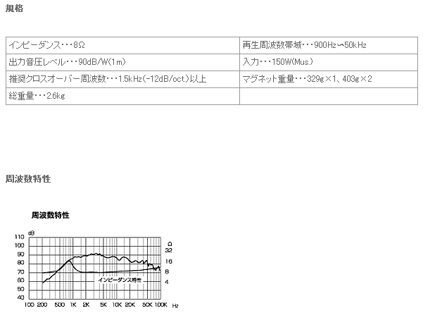 | 入力 | 150W(Mus.) |