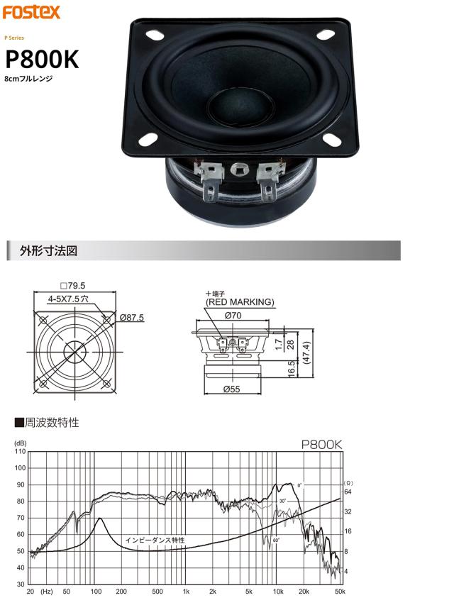 | P800K 8cmフルレンジユニット 1台 スペック情報 | |