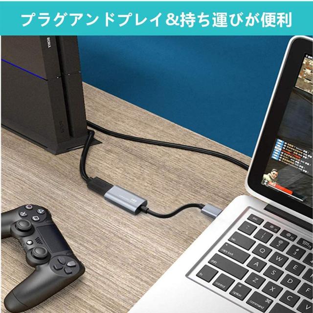 【HDビデオキャプチャ&ゲームキャプチャ&オーディオキャプチャ機能】高速USB 2.0テクノロジーを搭載し、1080P 60HZ 30FPS HDMI HDビデオ信号をキャプチャおよび転送することができます(最高解像度は3860x2160、フレームレート:30fps)。【高品質デザイン】ユニボディアルミ合金の外装、イオン化仕上げ、高品質の製造、耐久性を採用しています。外殻ケースが高品質のPC耐火材料で作られます。過熱、ショートなどを防止する保護システムを備え、PSE、TUVなどの認証が取得済み、安全な充電を提供いたします。