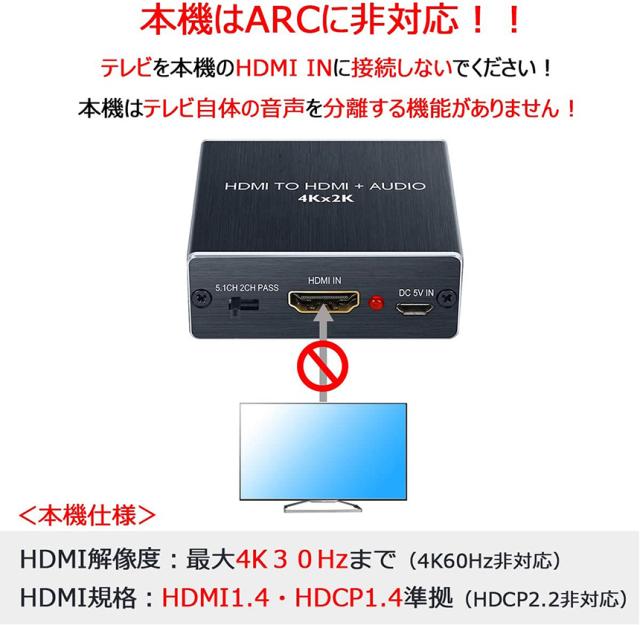 出力にHDMIしかないブルーレイコーダーやプレーヤーをオーディオにつなげて使用したい場合や、スピーカー非搭載モニターを使用する際に外部スピーカーを使用する場合などにおすすめです。
