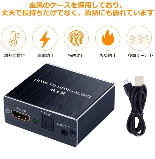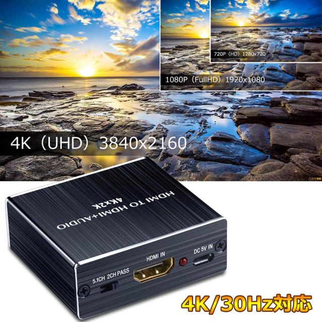 HDMI音声分離器 4K30Hz 光デジタル・3.5mmステレオ音声出力 デジタルオーディオ・サウンド分離 光デジタル/アナログステレオ出力 HDMIオーディオ分離器 音声分配器 2160P・HDCP1.4・3D対応 PS4Slim/Fire TV/STB/XBOX/Blu-ray/DVD/HD Player/Appleなど対応