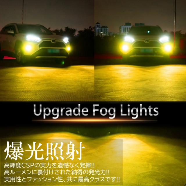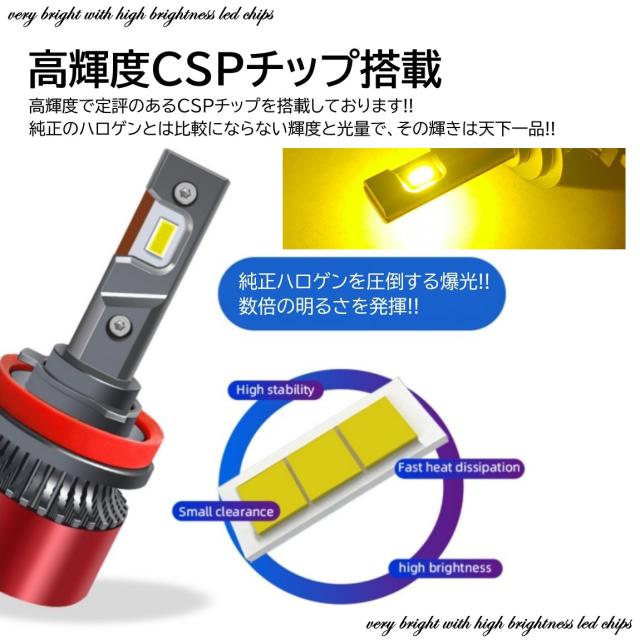 16000LM ゴールドイエロー 爆光LED ハイスペック H8/H9/H11/H16/HB4 LEDヘッドライト LEDフォグランプ イエローフォグ