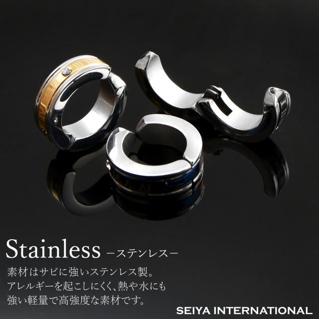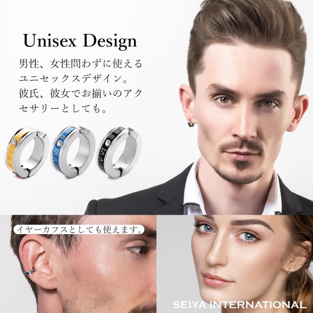 フェイクピアス本体にはローマ数字が列をなし中央にはきらりと輝くキュービックジルコニアが、天然ダイヤモンド のように輝き透明感と高級感を演出してくれます。CZダイヤ(キュービックジルコニア)は透明で屈折率がダイヤモンドに近い為、代替品としてジュエリーやアクセサリーに用いられています。非常に美しい輝きを放ち、貴方の魅力をより一層引き出します。ステンレスにすることにより高級感のある輝きを表現し、ブルー、ゴールド、ブラック、それぞれの色が一番映える素材にしました。シンプルなデザインが多いフェイクピアスの中、存在感抜群のこのローマ数字デザインのフェイクピアスはあなたの耳元でおしゃれに輝きます。