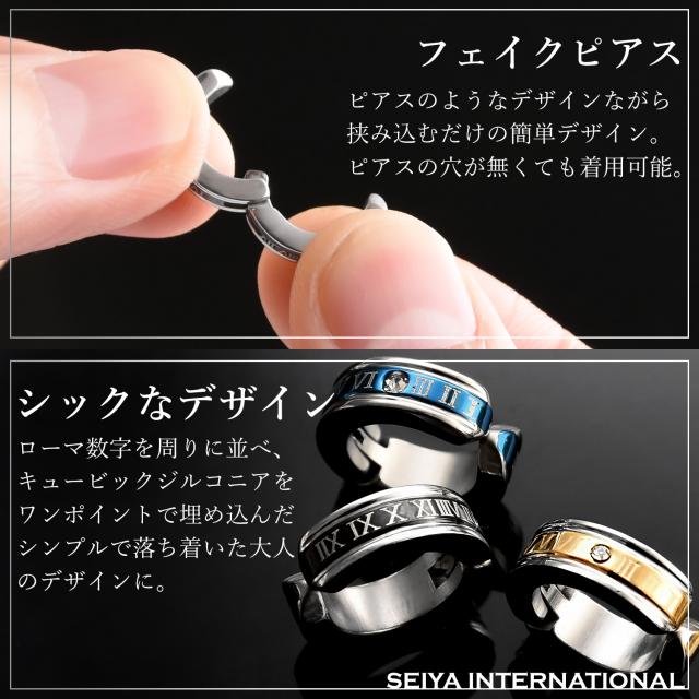 送料無料 フェイクピアス メンズ イヤリング イヤーカフ イヤカフ ピアス風 アクセサリー ノンホールピアス レディース ローマ数字 ステンレス シンプル フープ 挟む はさむ 穴なし 穴がいらないピアス ふぇいくぴあす いやりんぐ ピアス穴不要