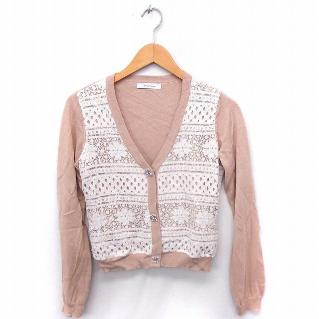 【中古】ディアプリンセス Dear princess カーディガン ニット レース ビジュー Vネック 長袖 ピンク /FT3 レディース