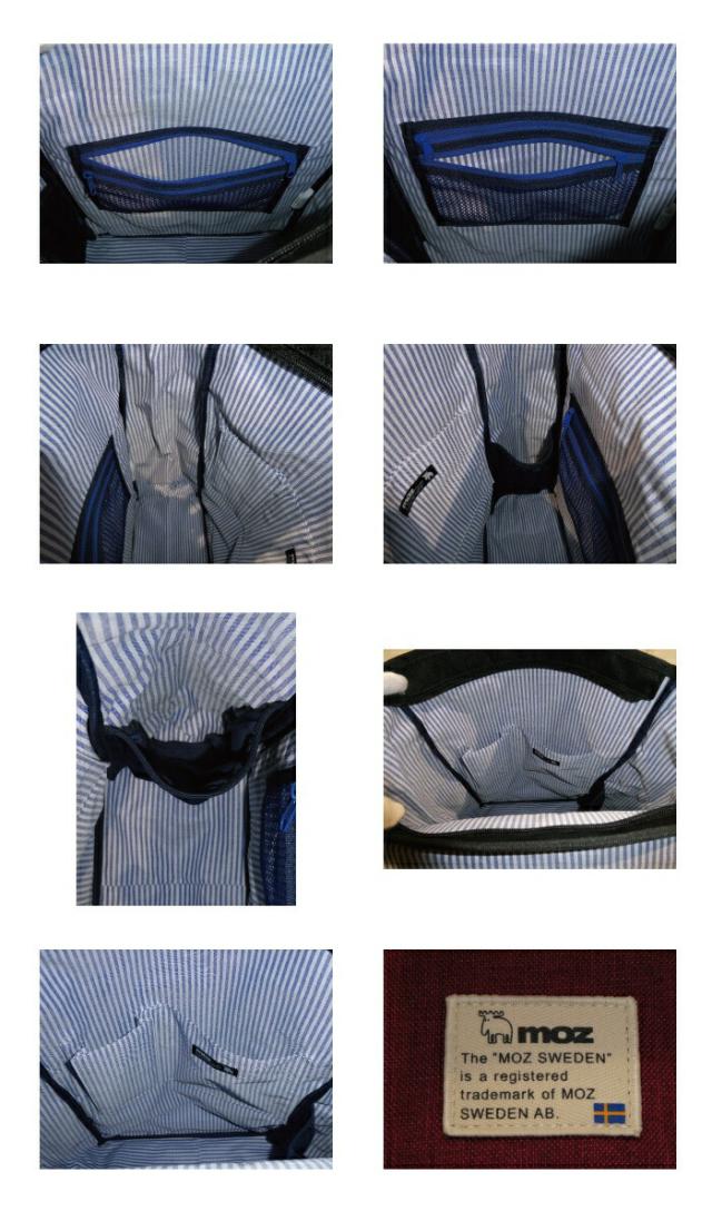 [外側] ・ファスナー付きポケット×1 ・オープンポケット×2 [内側] ・オープンポケット(大)×1 ・オープンポケット(小)×2 ・ファスナー付きポケット×1 ・メッシュポケット×1 ・ホルダー(モズポケット)×1