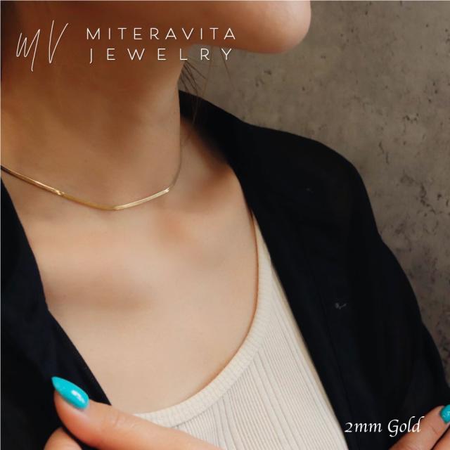 シンプル フラット スネーク チェーン チョーカー ネックレス