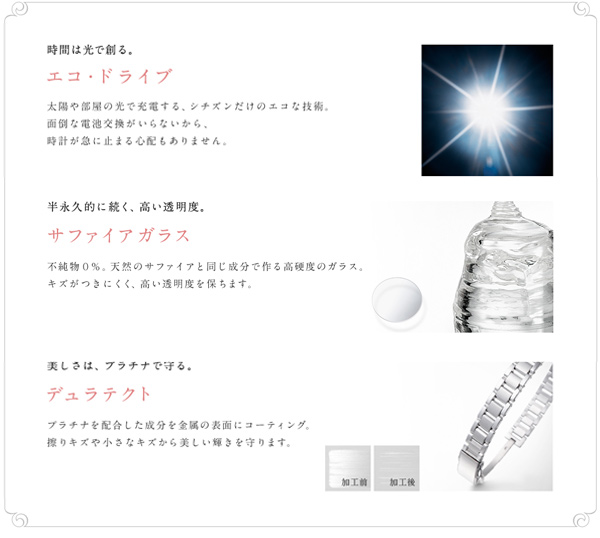 | 素材:ケース | ステンレススチール/デュラテクトプラチナ(ライトシルバー色・ピンクゴールド色) |