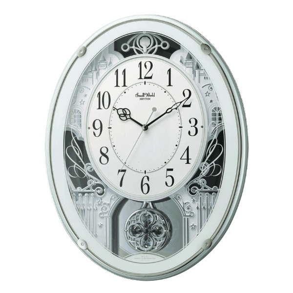 振り子時計 スモールワールドプラウド 18曲収録 電波時計 アミュージング時計 ( 掛時計 壁掛け 時計 メロディー おしゃれ 電波 RHYTHM 壁掛け時計 アナログ インテリア 雑貨 掛け時計 クロック とけい ウォールクロック )