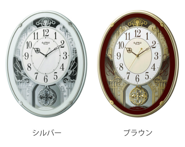 美しい音色とともに時を知らせてくれるアミュージング時計です。楽器から音を取り込んで構成された高音質サウンドで、実際に演奏を聴いているような臨場感のある音色に癒されます。毎正時に1曲、下記順番でメロディが流れます。クラシック、クリスマスソングなど全18曲が収録されています。(A・B・C切替式)