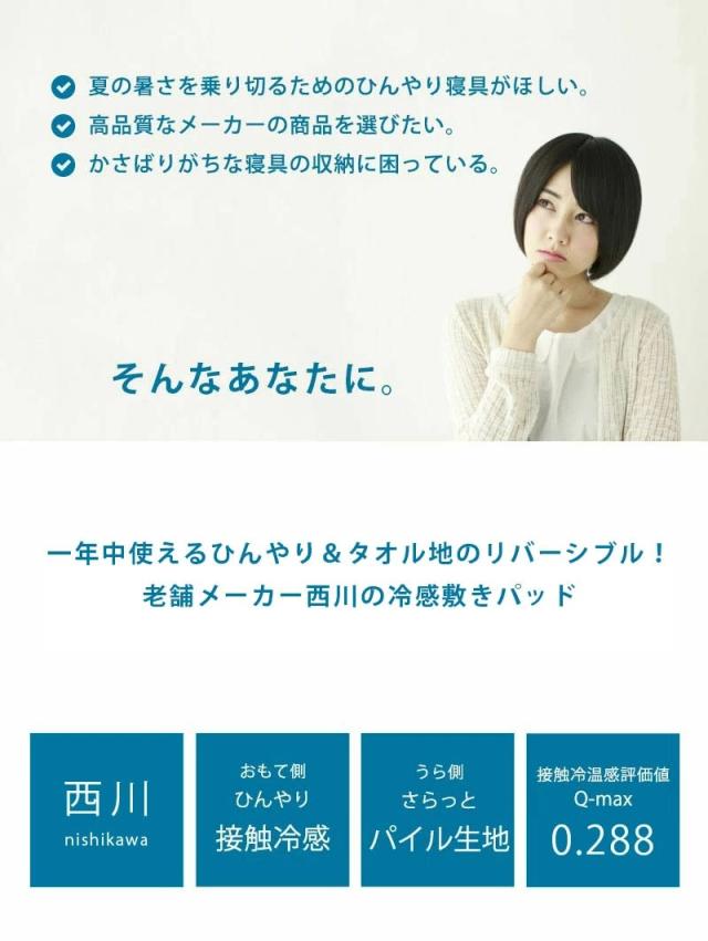 西川 接触冷感 敷きパッド【キング】 クールパッド ひんやり 冷感マット 夏 涼感 タオル地 リバーシブル キングロング兼用 180×205 2mtm25