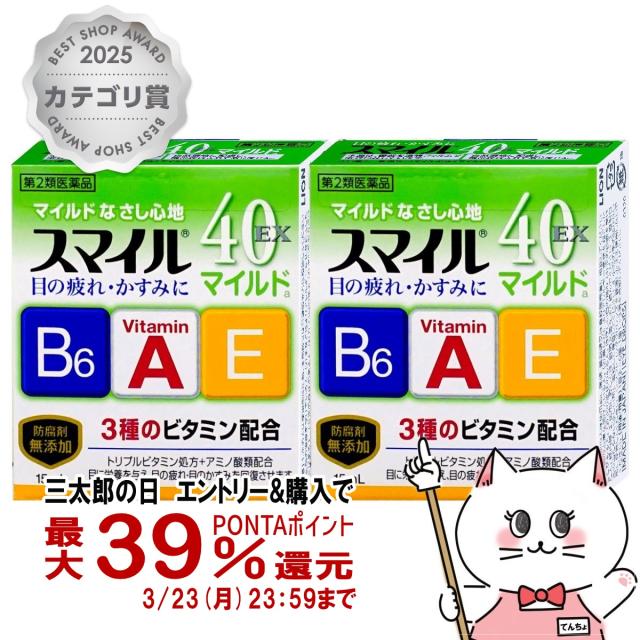 【三太郎の日 ポイント39%還元】【第2類医薬品】[セット]スマイル40EXマイルド 15ml×2個[ライオン][目薬][メール便発送OK](6043228-set1)