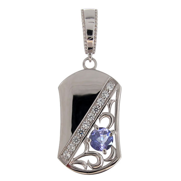 12月誕生石タンザナイトを使用したプラチナ製の、唐草プレートデザインメンズペンダントヘッドです。
