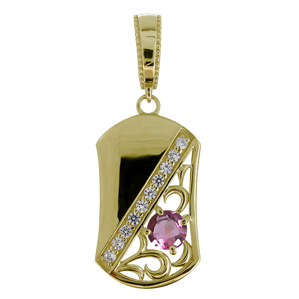 ペンダントトップ 18金 18k メンズ 喜平用 プレート ピンクトルマリン