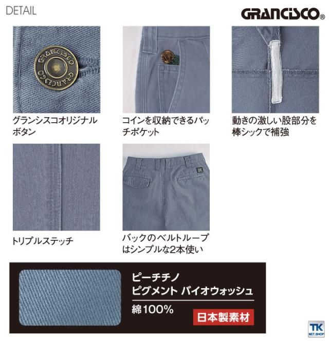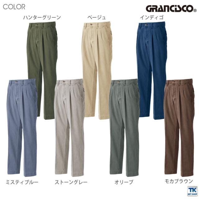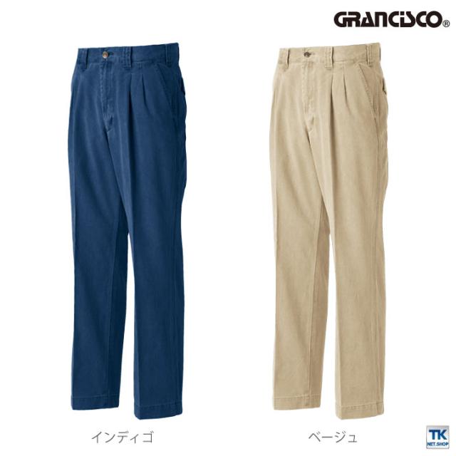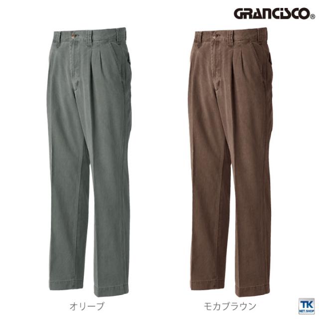 ツータックパンツ 作業着 作業服 グランシスコ ワークウェア ピーチ起毛 チノクロス ユーズド感 おしゃれ タカヤ 作業ズボン 秋冬 GRANCISCO スラックス ty-gc2010