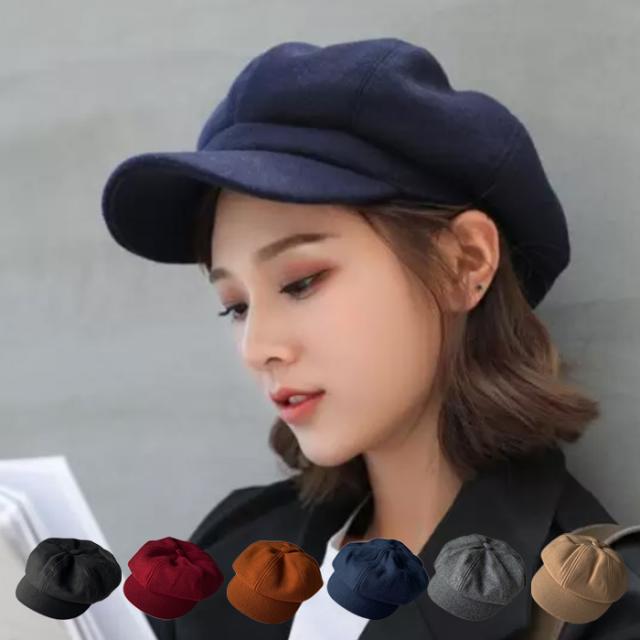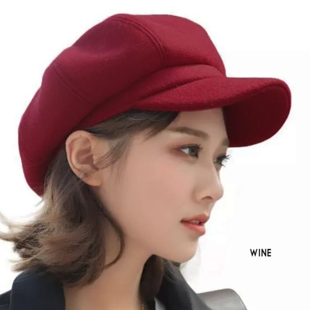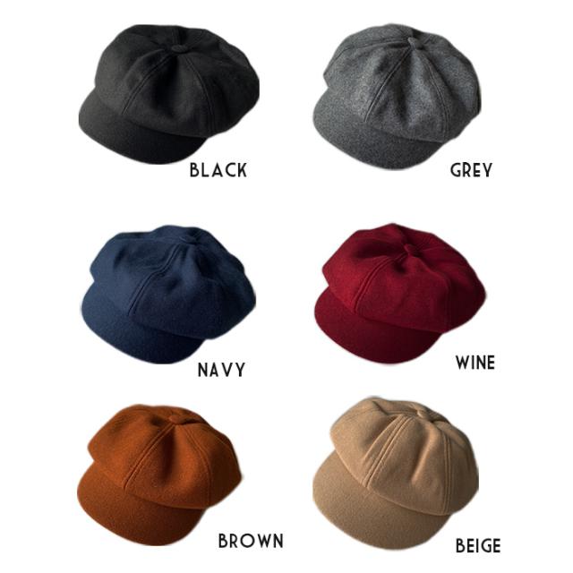 ウール混 メルトン キャスケット 6方 ハンチング帽 ウール混 秋冬 ムジ ブラック ネイビー グレー ワイン 冬物 防寒