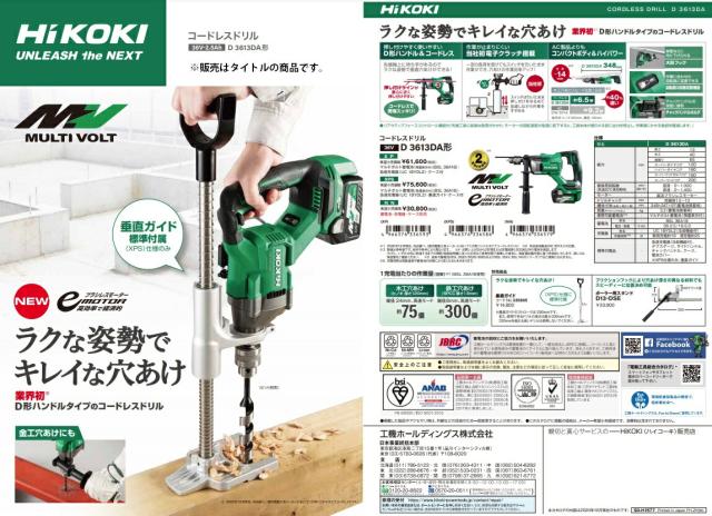 HiKOKI コードレスドリル D3613DA(NN) 本体のみ D形ハンドル 電子クラッチ搭載 回転数2段階切替機能 工機ホールディングス ハイコーキ 日立