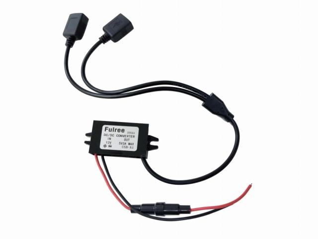 車やバイク等の12Vから充電用USBポート2口 (5V)に変換できます。