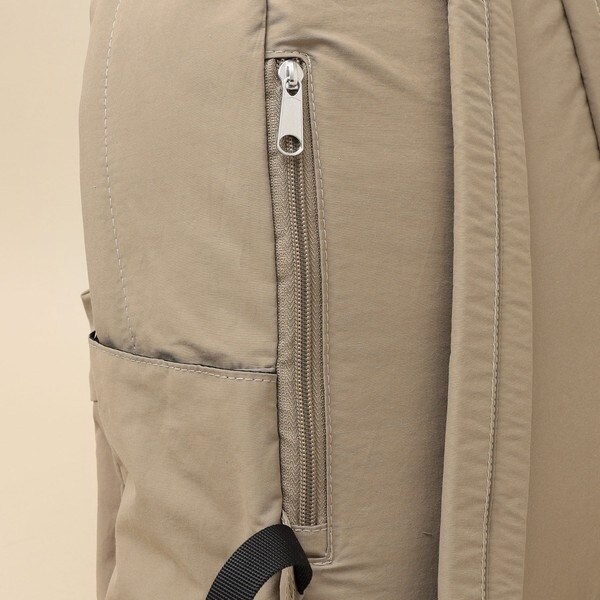 外側はフロントのジップポケットに、両サイドにペットボトルポケットが1つずつ、背面ジップ部分はスマートフォンや財布等が入れられる専用のポケットが付いております。内側は小物が入るメッシュポケットに、背面にノートPCやタブレットが収まるポケットが2つ搭載されており、シンプルなデザインながらも収納性の高いモデルとなっております。