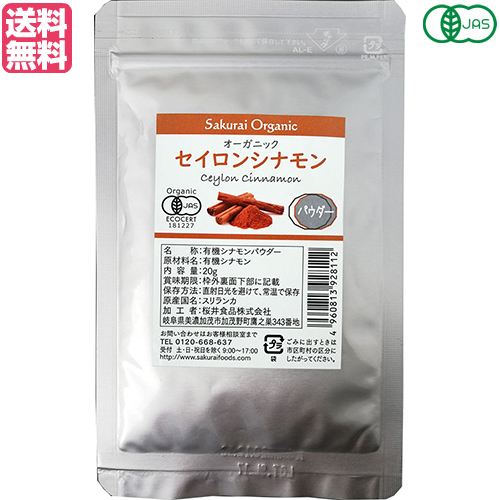 【お買い物ラリー!ポイント最大+5%】有機シナモンパウダー 20g オーガニック セイロンシナモン 桜井食品 送料無料