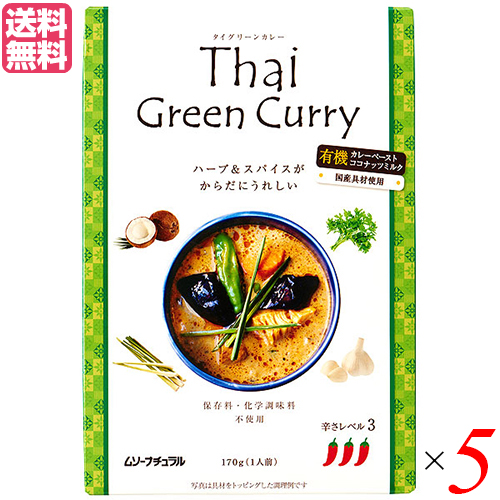 【超BIGラリー!ポイント最大+16%!】カレー レトルト タイカレー タイグリーンカレー 170g 5個セット ムソーナチュラル 送料無料