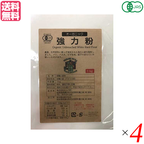 【3/16(月)9:59迄!ポイント5%+日曜5%】強力粉 送料無料 小麦粉 オーガニック強力粉 1Kg 4袋セット わらべ村