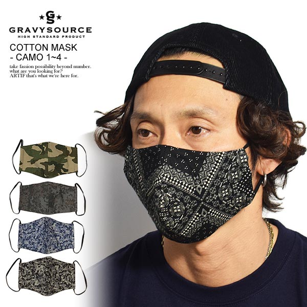 GRAVYSOURCE グレイビーソース COTTON MASK -CAMO 1〜4- メンズ マスク マスクカバー カモ柄 gravysource ストリート atfacc
