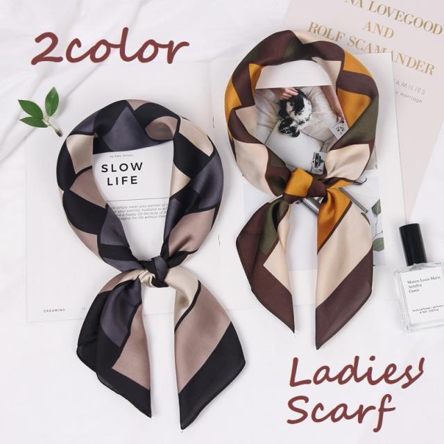 正方形スカーフ レディース 女性用 大判 スクエア柄 シルクタッチ ストール バンダナ バッグスカーフ ヘッドアクセサリー 上品
