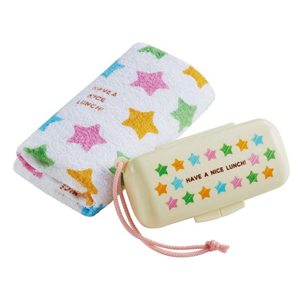 おしぼりセット パステルスター おしぼり ケース ( 星柄 お手拭き タオル ハンカチ 手拭き おてふき 子供 おしぼりタオル おしぼりケース ケース付 ハンドタオル 子供用 キッズ ランチグッズ お弁当グッズ 給食 )