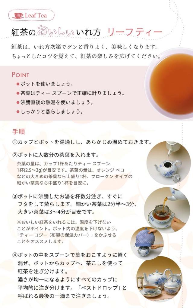 ホットの場合・・・温めたカップにティーバッグを入れ、熱湯140mLを注ぎ、約1分30秒むらします。