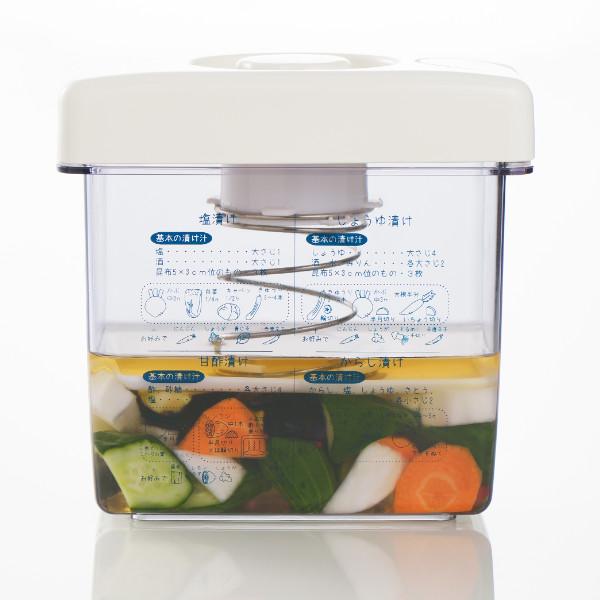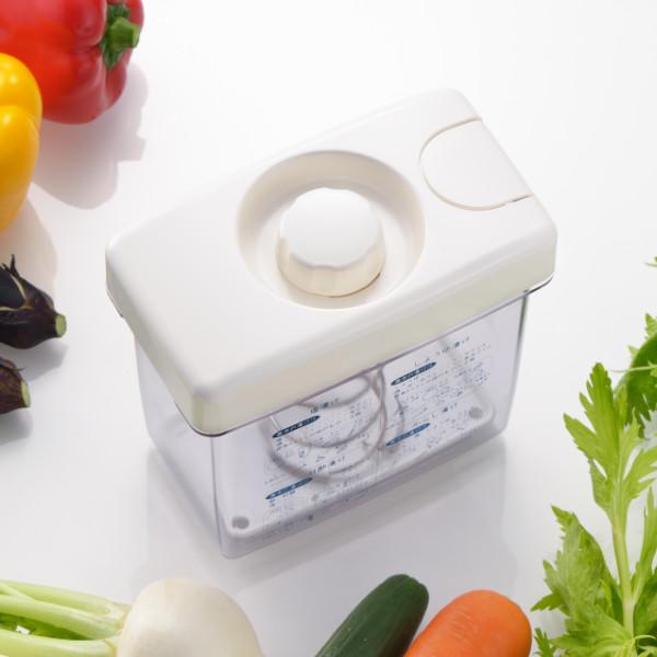 冷蔵庫のドアポケットにも収納できるスリムでコンパクトな漬物器です。また、重石いらずで、フタをするだけで押しができるので簡単にお漬物ができます。安心・安全な日本製です。