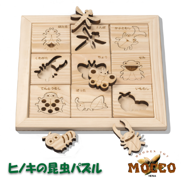 平和工業 Mocco モッコ ヒノキの昆虫パズル 日本製 ~ 5歳、6歳の誕生日プレゼントやクリスマス、お年玉やお盆玉のかわりにもおすすめ。