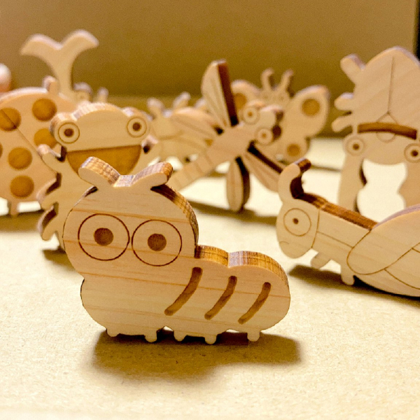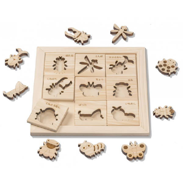 国産ヒノキを贅沢に使用した、業界初の色々な昆虫の切り抜きパズルです。