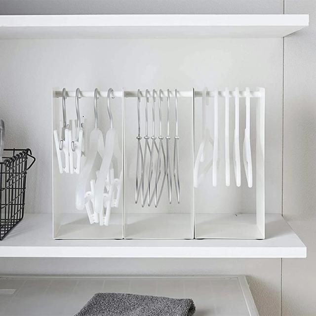 複数のラックを合わせて使用すると、大きさの違うハンガーやボトムスハンガーなどを分けて収納することもできます。