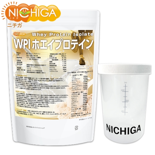 <シェイカー セット> WPIホエイプロテイン 1kg【送料無料(沖縄を除く)】 プレーン味 牛成長ホルモン不使用 (人口甘味料・香料不使用・無添加) WPI NICHIGA(ニチガ) TK1