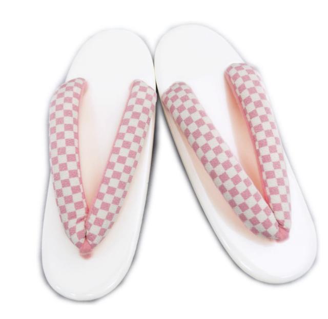 草履 ぞうり 白台ピンク白市松 フリー 24cm 着物 卒業式 袴 小紋 カジュアル 女性用 和柄