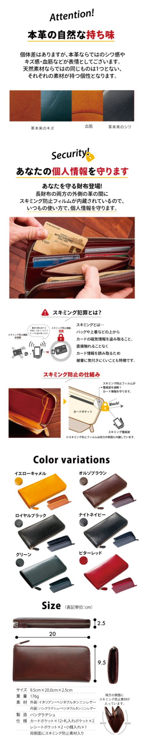 ロングウォレット YKKファスナー 長財布