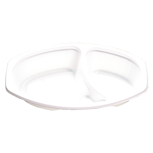 ごはん部分とルー部分が仕切れたタイプの便利なテイクアウト用カレー容器(本体)です。●電子レンジ使用可●オーブン使用不可●耐油性:あり●耐熱温度:105℃●ご飯の容量:約250g/ルーの容量:約230cc●入数:50枚