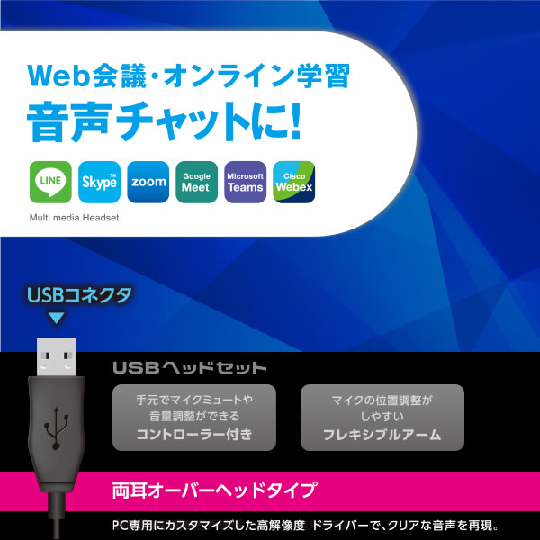 【テレワーク/オンライン学習推奨商品】 ELECOM エレコム 両耳オーバーヘッドタイプ USBヘッドセット HS-HP30UBK