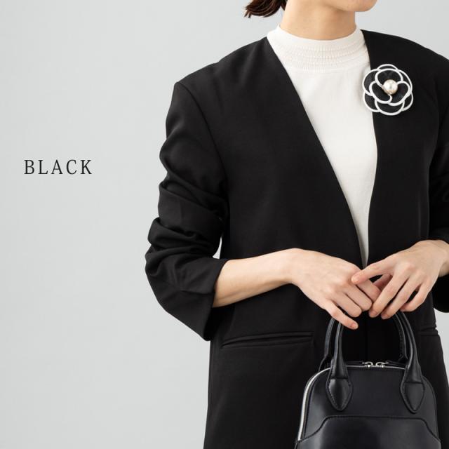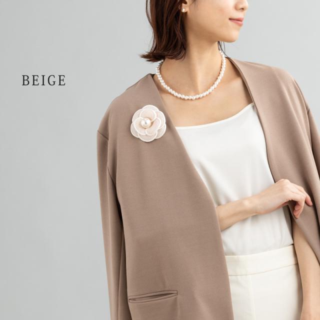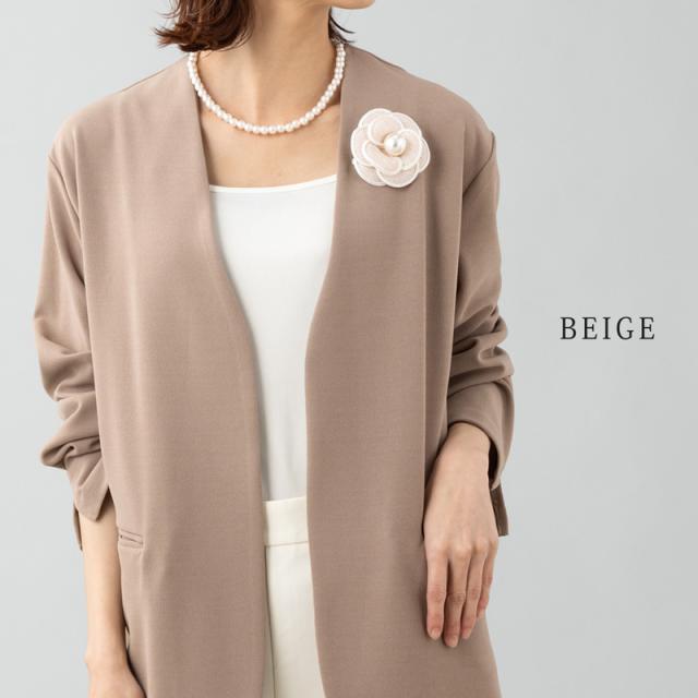 エレガントな大人レディのニュアンスを感じさせるカメリアモチーフのフラワーコサージュ。