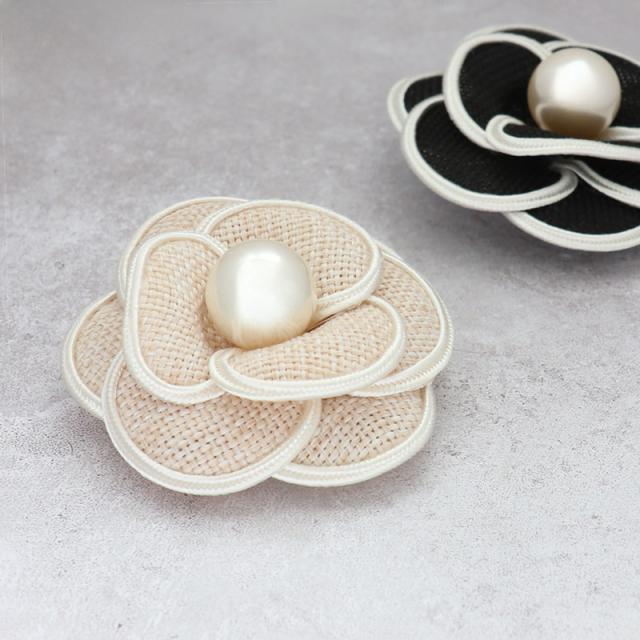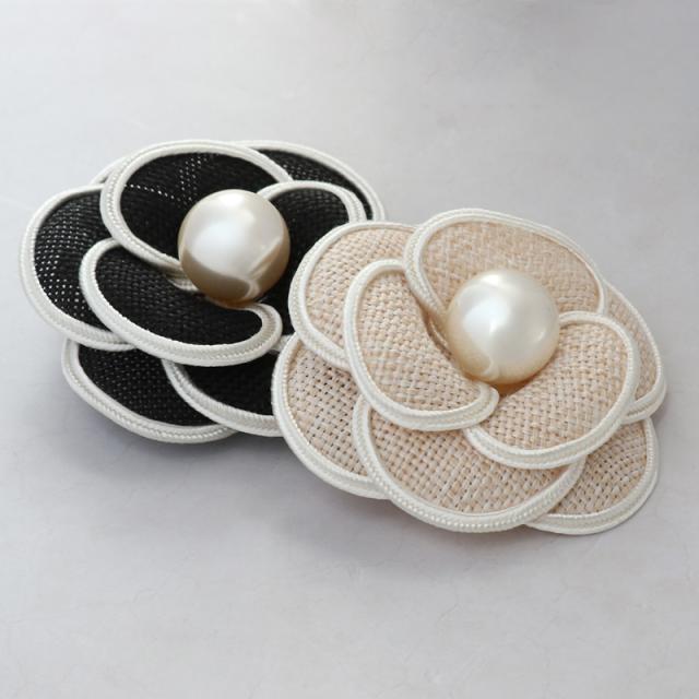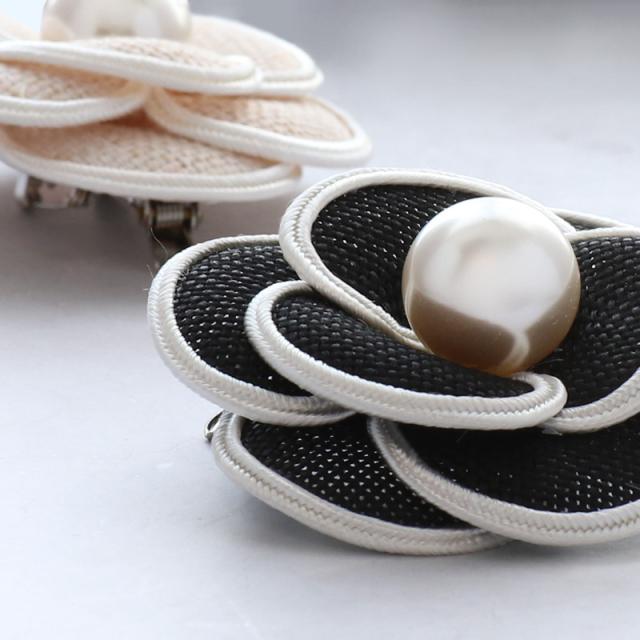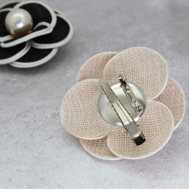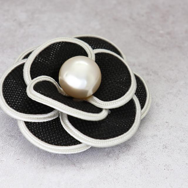 コサージュ ブローチ 結婚式 ※メール便不可 人気 カメリア フラワー パール シック 上品 シンプル クリップ付 安全ピン付 パーティー 二次会 謝恩会 フォーマル 発表会 シック 上品 パイピング 定番 大人 モチーフ ベージュ 黒 ブラック ホワイト