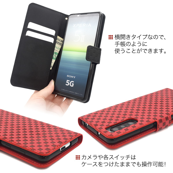 スマートフォンケース Xperia5 II SO-52A SOG02 A002SO 手帳型 市松模様 スマホケース シンプル 携帯ケース 装着簡単 お洒落 格子柄 和風 カジュアル オシャレ 和柄 スマホカバー スタンダード スタイリッシュ スマホケース auスマホ 大人っぽい スマホアクセサリー