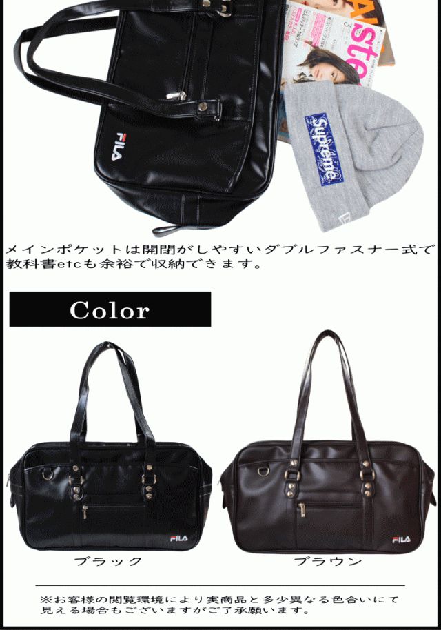 スクールバッグ FILA フィラ 本革風 大きめサイズ 学生かばん 手提げ鞄 通学バッグ サブバッグ 軽量 ブラック色 ブラウン色 FIB1421A FIB1721A