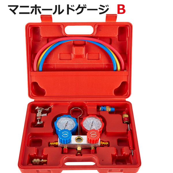 エアコンガスチャージ マニホールドゲージ 対応冷媒 R134a R32 R410a R404a マニホールド カプラー 缶切バルブ ガス補充 カーエアコン ルームエアコン