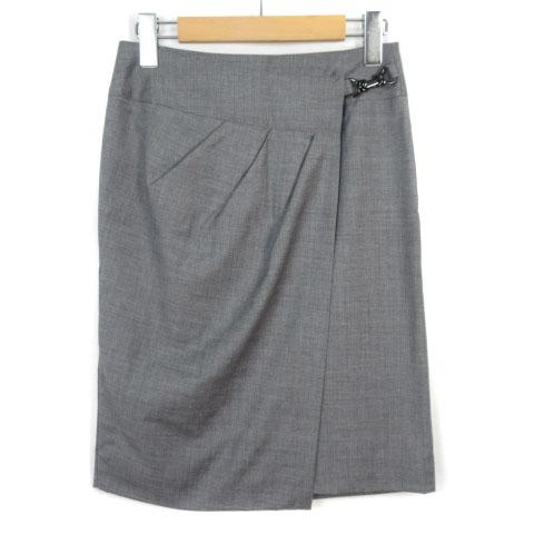 【中古】インディヴィ INDIVI V.A.I スカート タイト ラップテイスト スリット ウール 36 グレー レディース